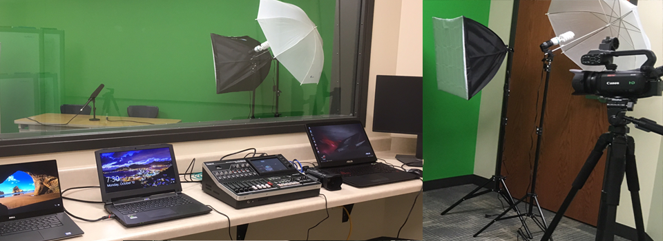 MCDS has a new state-of-the-art recording studio. The live studio, with a greenscreen wall, connects to a soundproof control room for editing and live broadcasting.